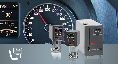 Components such as condensers, air lines and exhausts are frequently exposed to temperature fluctuations from -90  °C to +150  °C. The behaviour of the materials in the different components can be tested with cold bath circulation thermostats under a range of load conditions.